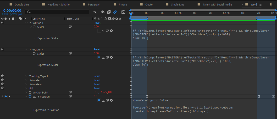 The build required taking animations from other motion designers and rigging them into fully controllable MOGRTs — something the Creative Expression Library made possible at a scale that would have otherwise been prohibitive. I also embedded a direct help ticket link inside the tools themselves, so issues surfaced in real time and the library stayed current.