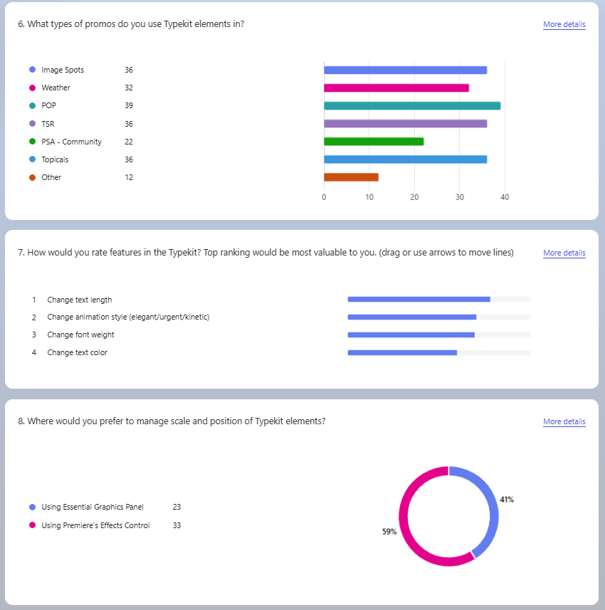 Before a single frame was designed, I asked what others hadn’t: who are these tools actually for, and what do they actually need? Inspired by a session I'd had directly with the After Effects team at Adobe, I put together a user survey covering proficiency levels, workflow priorities, layout preferences, deployment contexts, and what version of software stations were still running. That last detail turned out to matter enormously.